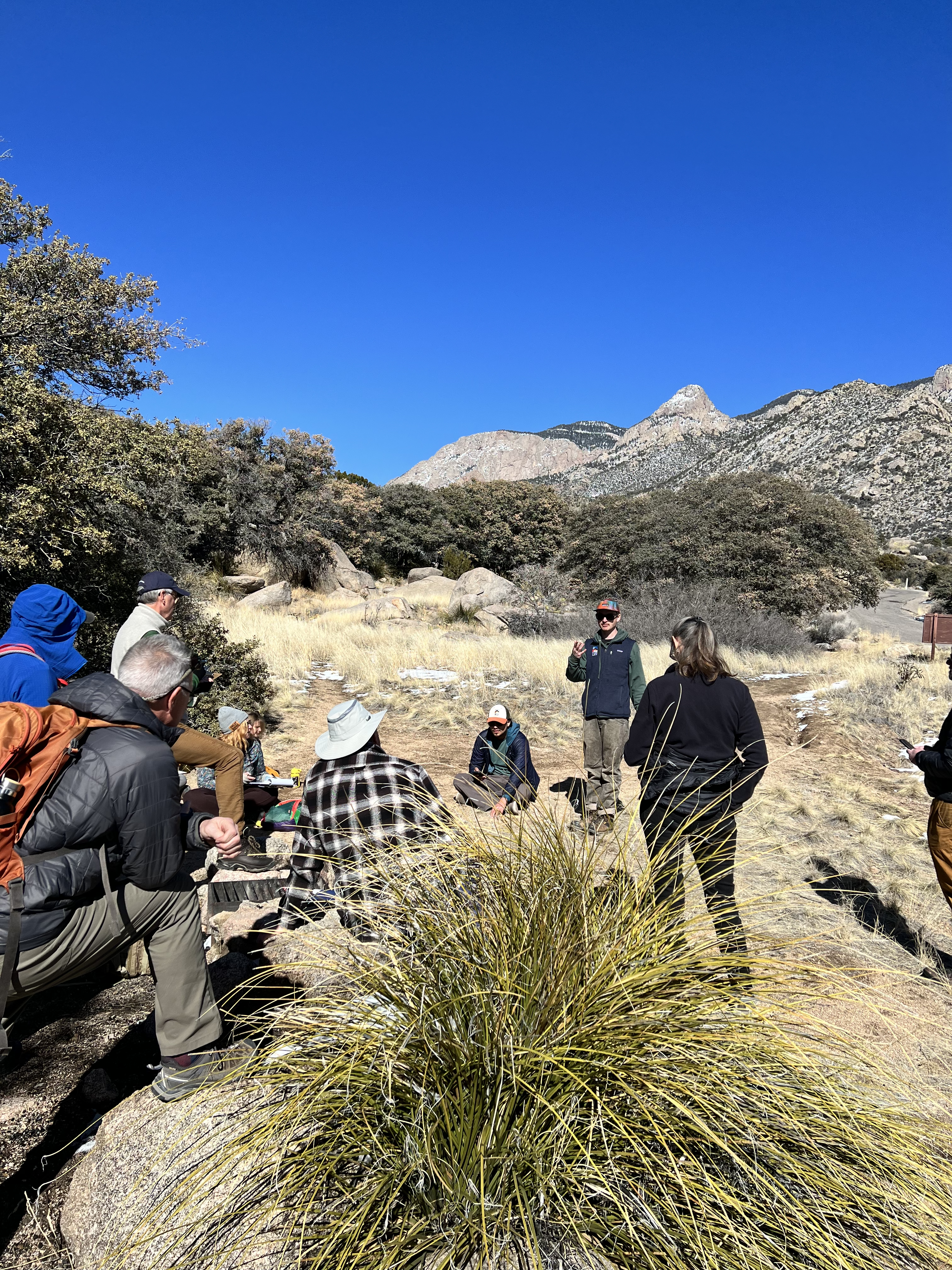 On a bright afternoon in early February, several New Mexico Wild staff members met up in the foothills of Albuquerque to learn hands-on how to collect this data as Wilderness Defenders. Will Ribbans, our Wilderness Stewardship & Outreach Manager, provided some prep materials the day before so that we would have the necessary application pre-downloaded on our smartphones for the training.